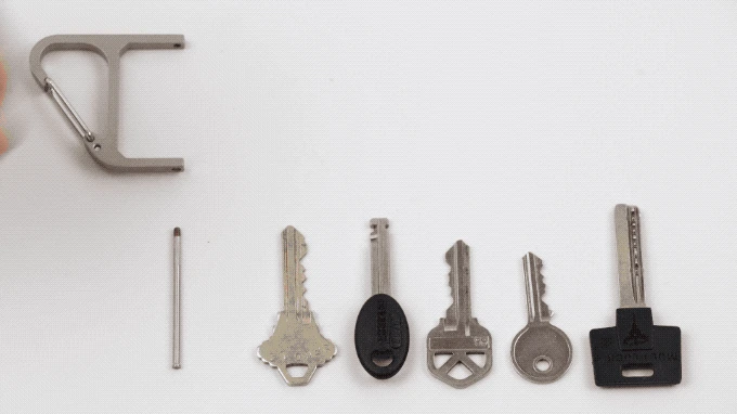 Рифлёный штифт собирает ключи в ровный ряд и открывается без усилий. Нейлоновая вставка не даёт ему раскручиваться в повседневном ритме и надёжно закрепляет ключи на штифте.